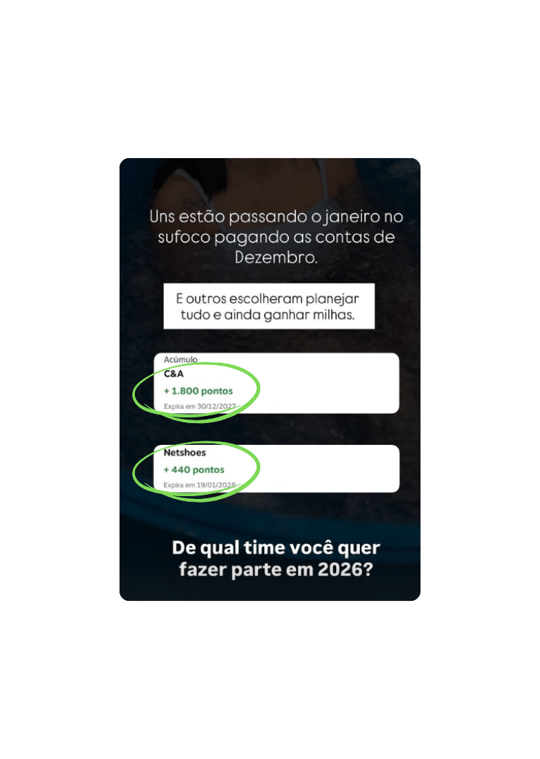 em pontos para usar até 2027